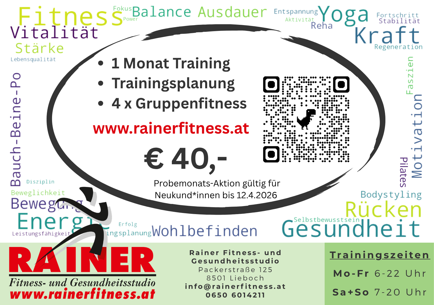 1 Monat Fitness – Osteraktion 2026 1 Monat Training inklusive Trainingsplanung und Gruppenfitness bei Anmeldung bis spätestens 12. April 2026 Osteraktion Anmeldung 28. März 2026